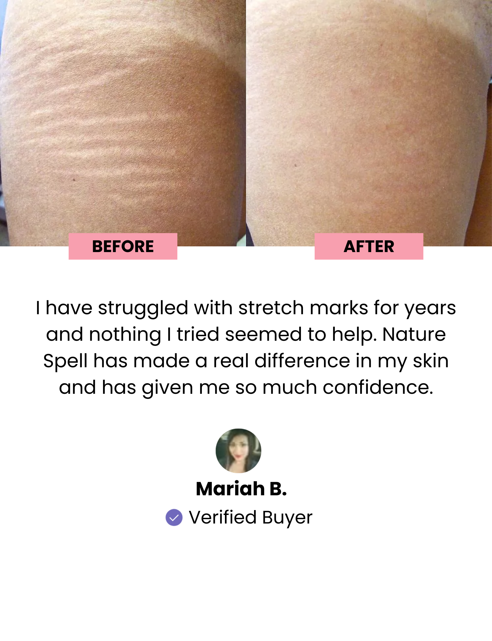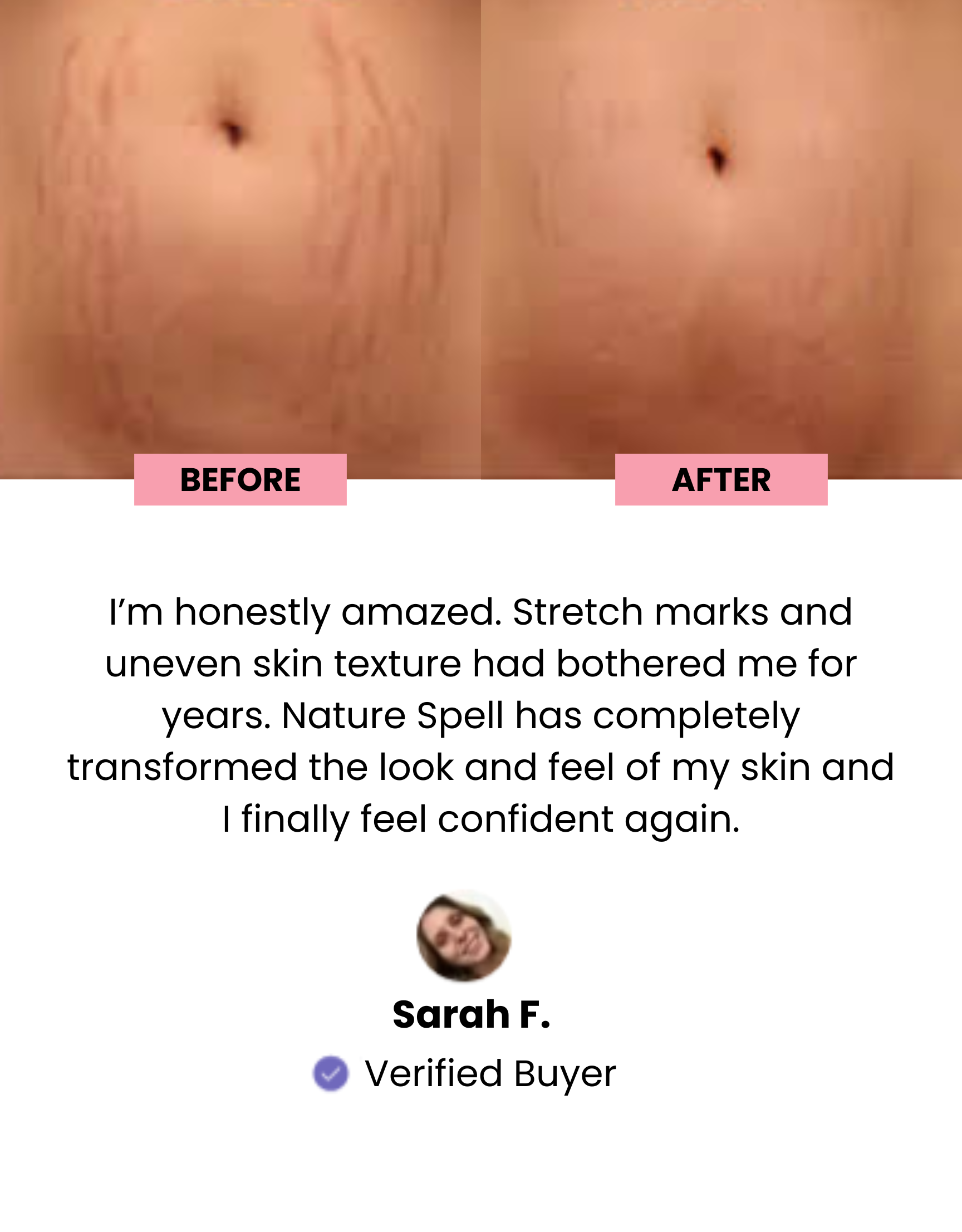 Meet Nature Spell Stretch Mark Oil, a simple daily solution designed to improve the appearance of stretch marks and support soft, healthy looking skin.